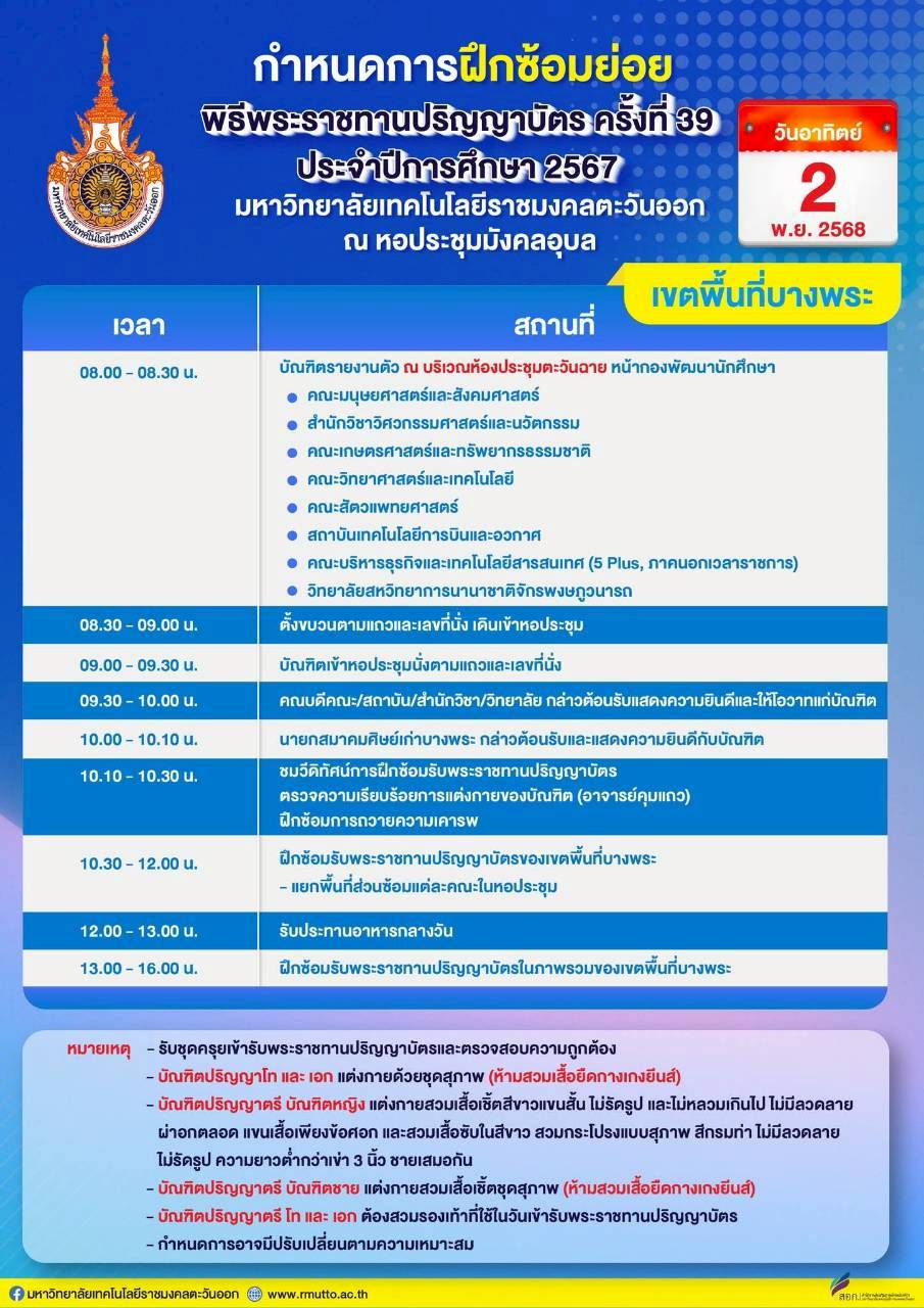 กำหนดการฝึกซ้อมย่อยในแต่ละเขตพื้นที่/วิทยาเขต